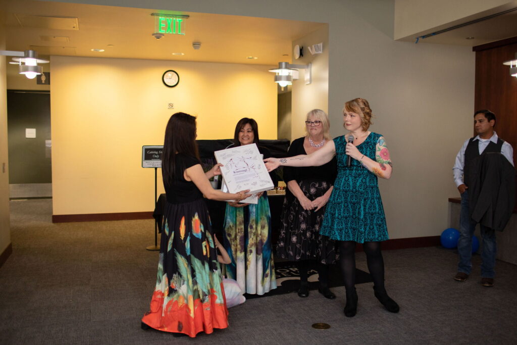 The highlight of the evening was when Adoption Savvy, a support group of mothers and adopted individuals from their therapy group, presented Jenette and Janine with a priceless gift. A handcrafted Kintsugi Japanese box, symbolizing the process of fixing broken pieces with gold, was a powerful representation of their mission. This metaphor resonates deeply with their work in the adoptee community – embracing the beauty of human flaws and reuniting families through love and compassion.